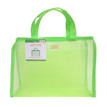 珠友文化 寬底透明網狀手提袋 22x19x11cm 聚氯乙烯 聚酯纖維 M 黑色