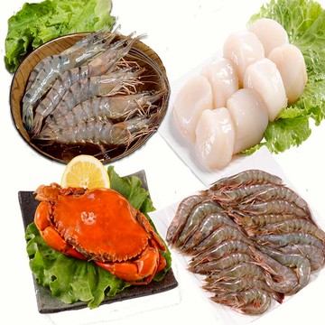 【華得水產】特大草蝦1盒(250g/8尾/盒) +特大白蝦1盒(淨重500g土10% 約18-22尾/包)+干貝150克+紅蟳200克-廠商直送