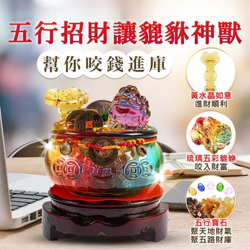 【咬進滾滾財富】如意進財貔貅聚寶盆x1+黃金檀木吉祥珠x1 (補財庫/招財/居家擺件/旺財位)