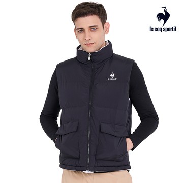 【LE COQ SPORTIF 法國公雞】男女款黑色休閒潮流雙面穿鋪棉背心LKU63293