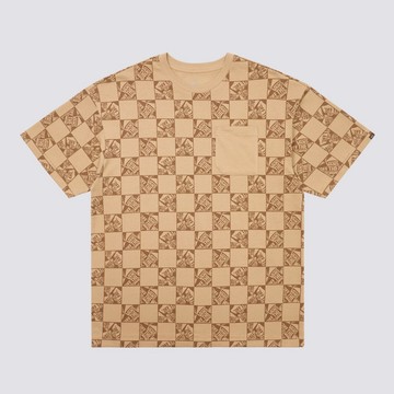 Skate Checker 奶茶色滑板logo圖案短袖口袋T恤