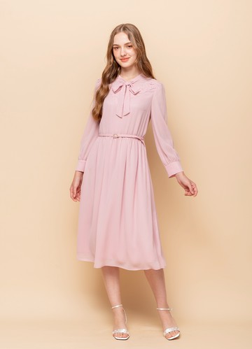真絲雪紡袖 Rosy 迷你連衣裙 正式連衣裙 長款連衣裙 粉色連衣裙