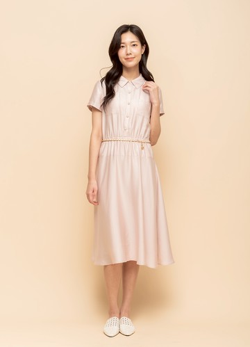 CLL巧玲瓏 假兩件壓褶珍珠波浪領洋裝 3195202