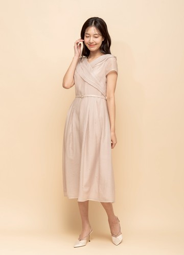 CLL巧玲瓏 假兩件壓褶珍珠波浪領洋裝 3195202