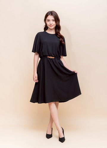 Butterfly Sleeve Round Neck Navy Dress
