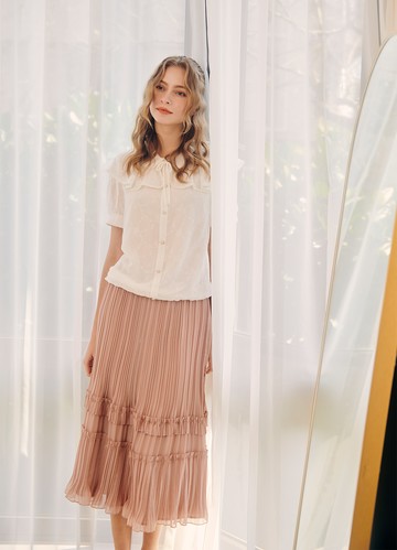 OB嚴選-法式荷葉前抽皺綁帶傘襬上衣