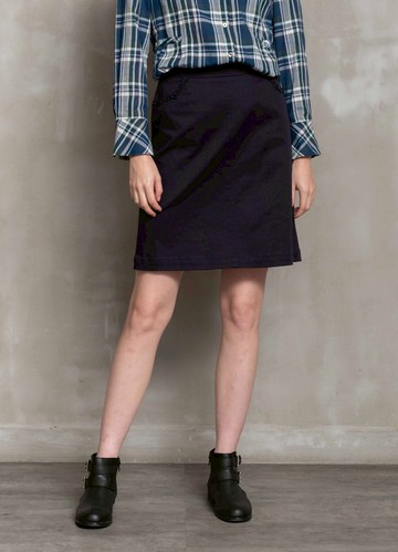 *細緻文靜織帶綴飾棉質斜紋A字裙