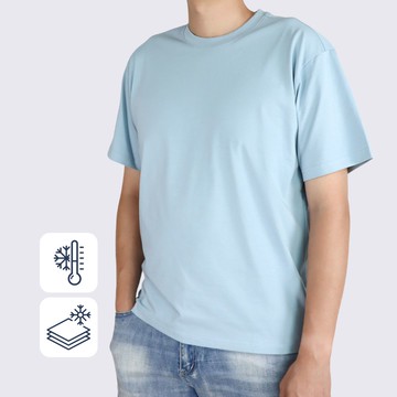 清輕U領中性短袖上衣 煙波清藍 XL