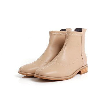 MAGY 腳後拉鍊羊皮素面低跟短靴 咖啡 #15900