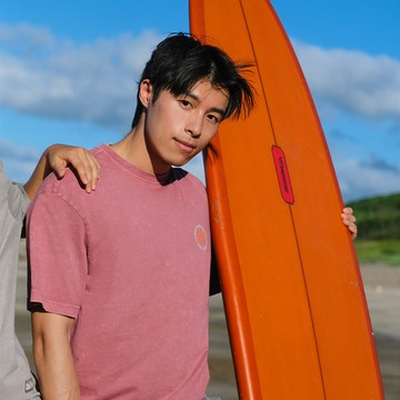【Hang Ten x 啤酒頭釀造】仿舊短袖T恤-中性(淺紫紅)