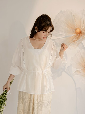 雲朵自訂款-繡點薄紗蕾絲罩衫上衣/洋裝