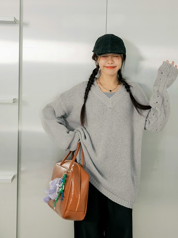 【Fee爆款8色】寬鬆透膚短版針織上衣🔥罩衫 v領上衣 女上衣 韓系 薄長袖 防曬 短版 輕薄 天然纖維 素色 秋冬穿