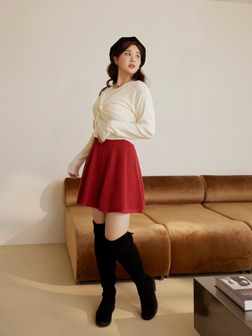 氣質千鳥格鬆緊腰百褶短裙(FF43L0L0280) - ehka sopo