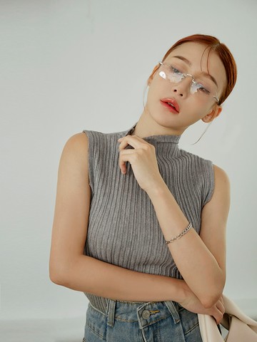 純色立領坑條高領針織背心
