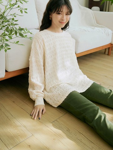 立體皺感紋理落肩寬鬆上衣