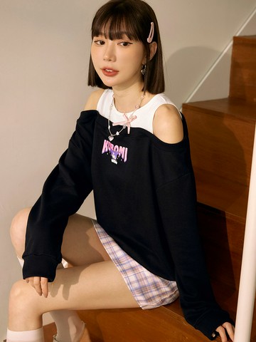 酷洛米.撞色拼接字母印花短版長袖上衣