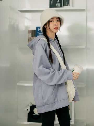即墨純棉加絨加厚連帽衛衣女秋冬季韓版灰色寬松顯瘦套頭長袖上衣