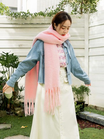 溫暖素色多色仿羊絨鬚邊圍巾