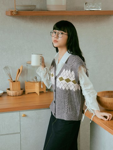 日系針織麻花織紋圖騰開釦背心