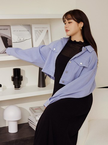 【MASTINA】襯衫領弧線插袋西料長袖夾克 白 灰