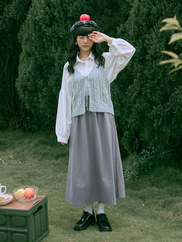甜美紋理細褶長裙(FF42L0L0580) - ehka sopo