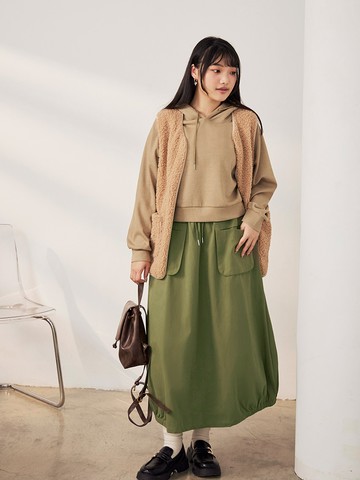 素面圓領短版造型長袖上衣-咖啡 S/M/L