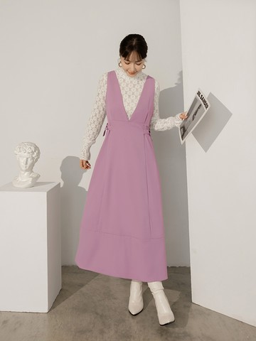 法式 淡粉色千金緞面收腰連衣裙無袖花苞裙