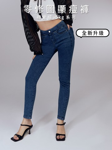 視覺細-5KG.腰鬆緊輕保暖刷毛窄管牛仔顯瘦褲