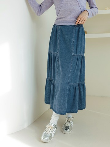 車線不收邊修身A字傘襬丹寧牛仔長裙
