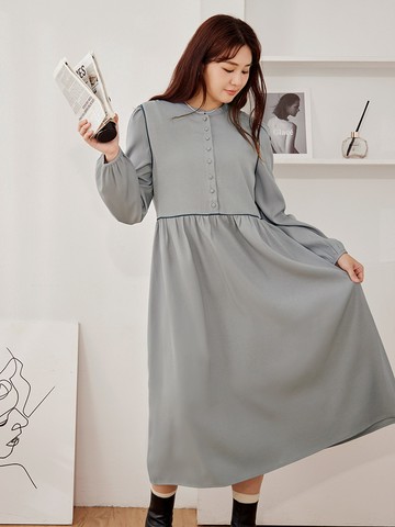 純棉大翻領鬆緊澎袖襯衫洋裝