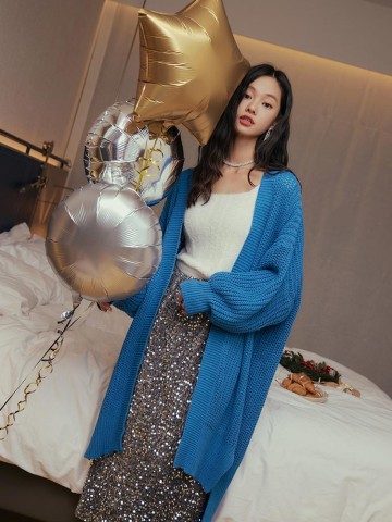 【結帳69折】萃墨花茗針織外套長裙套裝-55805