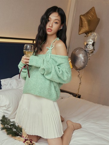 韓版氣質一字領針織上衣【W481】