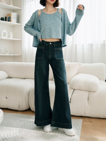 內裏加絨保暖禦寒垂墜感闊腿牛仔褲