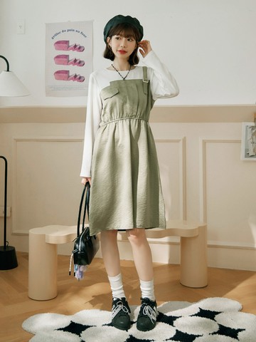 CLL巧玲瓏 假兩件壓褶珍珠波浪領洋裝 3195202