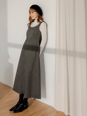 懶人不易皺.雙肩帶美背傘襬長洋裝