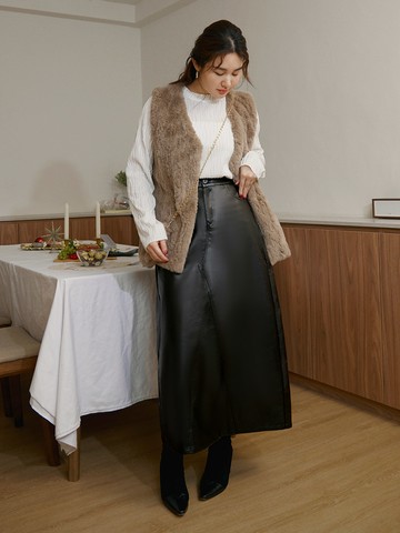 雲朵自訂款-質感後鬆緊後開衩皮長裙