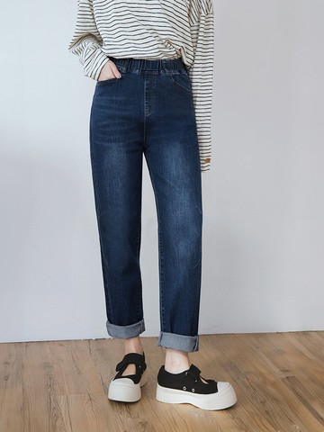 咖啡廳家族.純棉腰鬆緊錐形牛仔褲