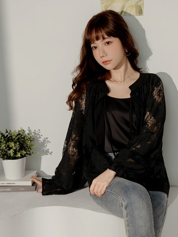 加購優惠(L) 質感透膚黑色長袖上衣