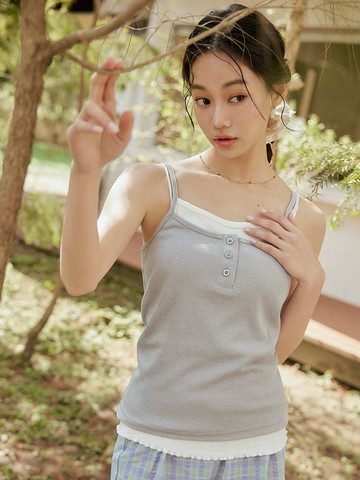 假兩件撞色排釦細肩背心