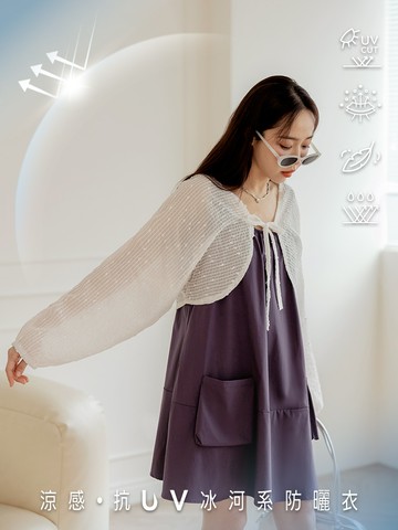 涼感.抗UV調節裙襬冰河系防曬無袖短洋裝