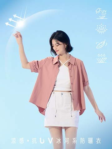 涼感.抗UV前短後長排釦冰河系防曬短袖襯衫