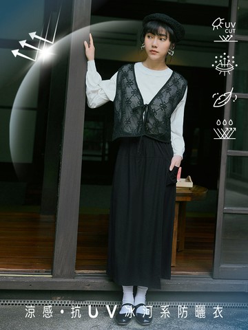圓點雪紡 雙面穿蝴蝶袖綁帶罩衫 黑色 訂製款
