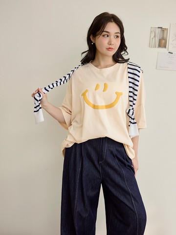 雲朵自訂款-親膚棉質笑臉發泡印花寬版上衣