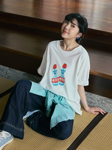 non-stop 喵喵微笑側釦插畫T恤-2色