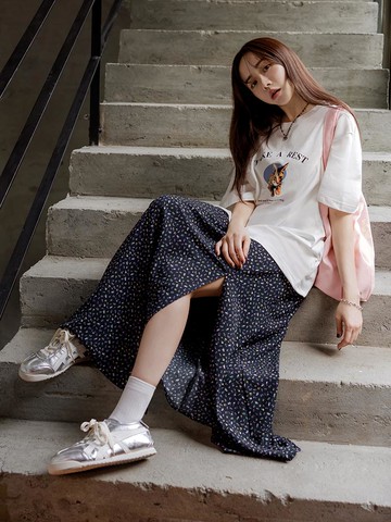 Just J’S Miss 23秋冬新款-純棉澳洲印花鬆緊蛋糕長裙 J23W1201