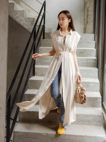 長裙,V領,跳袖,灰,木皮,純棉材質。