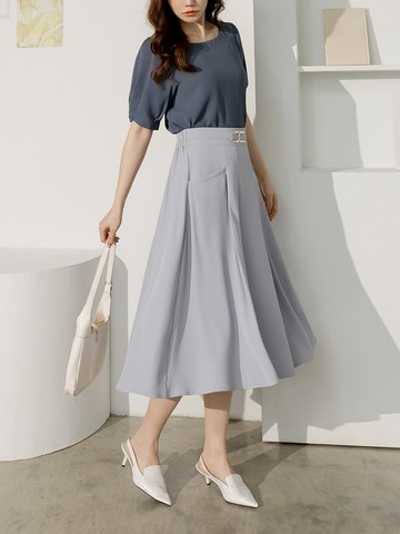 緞面後鬆緊腰設計打摺長裙(FC37L0L0280) - Te chichi