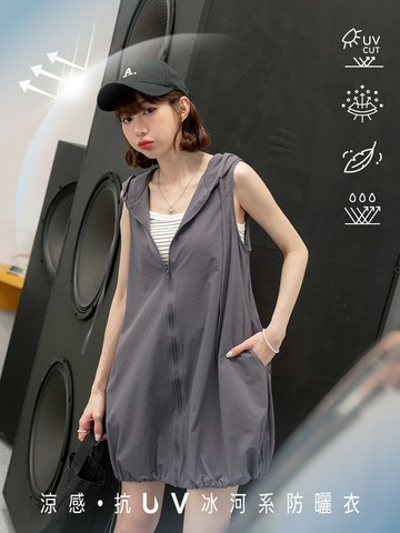 涼感.抗UV調節裙襬冰河系防曬無袖短洋裝