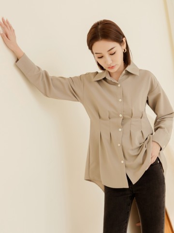 兩側抽繩綁帶褶襉拼接襯衫(06001444300) - Green Parks