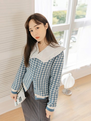 淡紫色卡通幾何針織開衫套裝可愛氣質